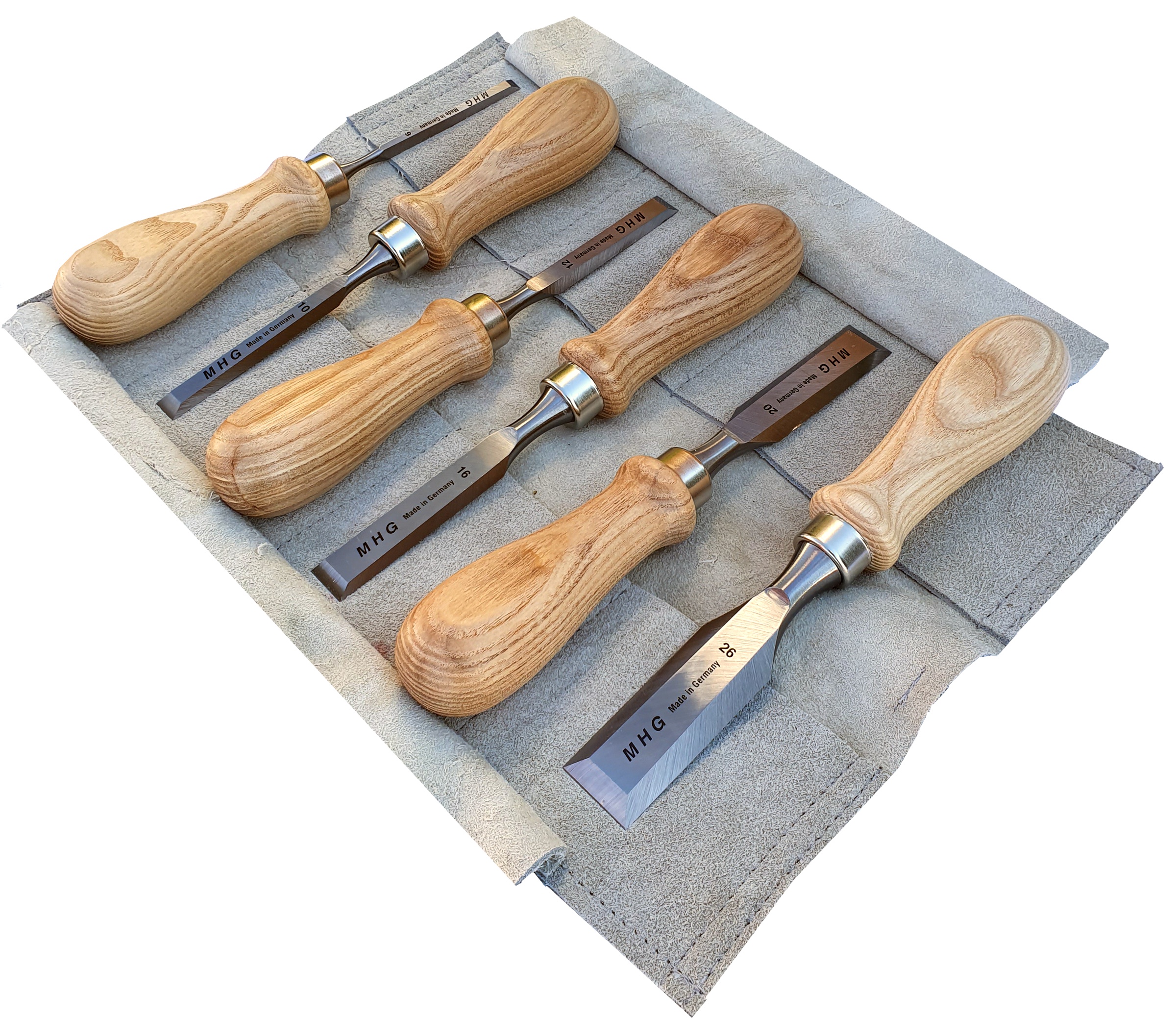 BUTT CHISEL, Seitenfase bis Spiegelseite, Heft ohne Zwinge, 6tlg. Satz in Lederrolltasche, Inhalt: 6, 10, 12, 16, 20, 26 mm