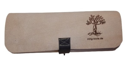Stechbeitel - Satz in Rolltasche Leder Baum, Weißbuchenheft braun/ Klinge feingeschliffen, 6 tlg. Größen: 6, 10, 12, 16, 20, 26 mm