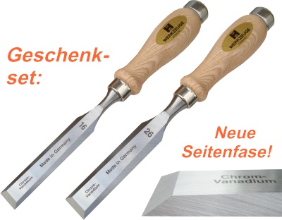 SET 2tlg. Stechbeitel-Premium, Seitenfase bis Spiegelseite, Rundheft geölt, 16,26 mm