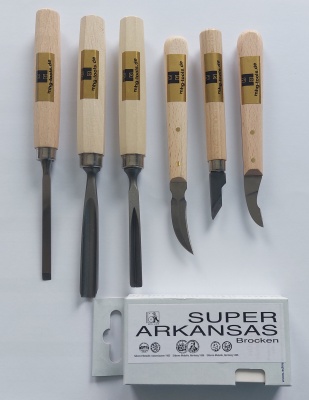 6-tlg Satz Kerbschnitzwerkzeuge Lederrolltasche