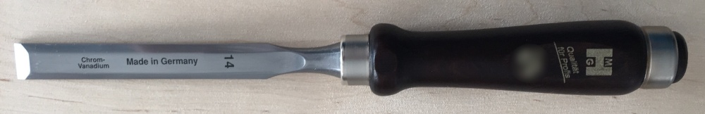 Stechbeitel mit Weißbuchenheft 14 mm, Heft braun, lackiert / Klinge poliert