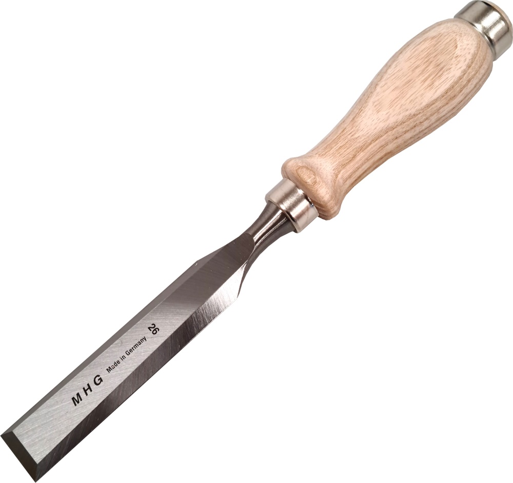 Stechbeitel-Premium, Seitenfase bis Spiegelseite, mit Rundheft Esche geölt, 20mm